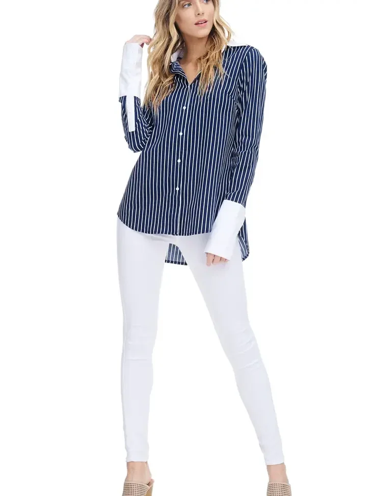 Button down, collar and cuff contrast, stripped shirt